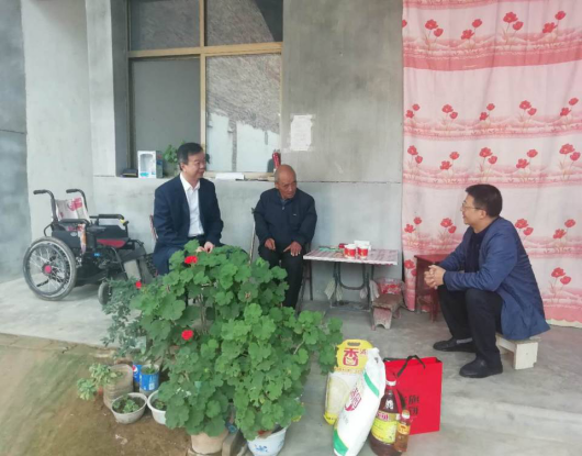 時值中秋、國慶雙節來臨之際,9月20日,陜西地質工程有限公司黨總支書記、執行董事、總經理石劍帶著米面油月餅等生活物資看望慰問了天度村貧困戶馬治義一家。