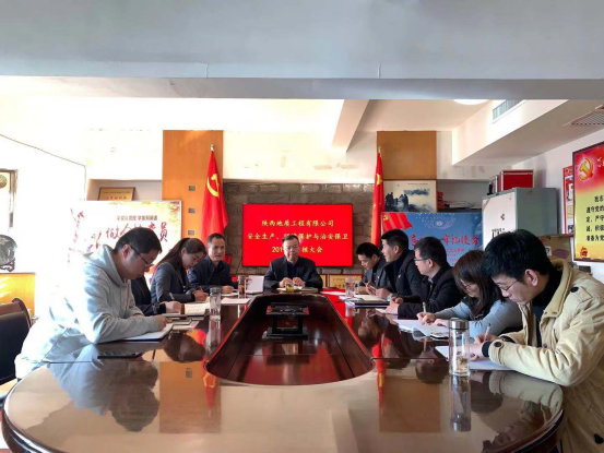 2019年12月30日上午,陜西地質工程有限公司召開2019年安全生產、環境保護與治安保衛年終總結、考核會議。會議由總經理王強社主持,公司全體安委會成員參加。